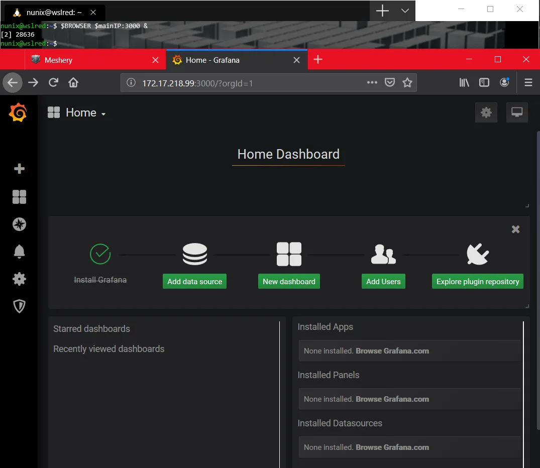 As stated above, Meshery can leverage the analytics provided by Grafana. For this blog post, as everything is built from scratch. Here is the setup for a new Grafana dockerized instance.